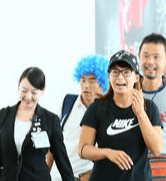 3日はこの青いアフロに袴風の衣装にプラスチックの剣を持ち、侍に扮していましたが、4日にもこの青アフロをかぶり、最終日にはひょっとこのお面姿で登場するサービス精神。
